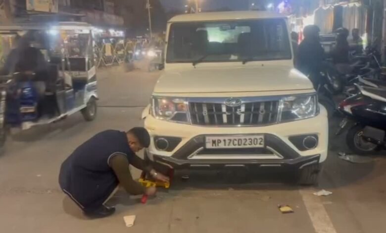 रीवा में गाड़ियों के पहियों में लगाई गई बेड़ियां, ट्रैफिक पुलिस का चक्का अरेस्ट एक्सपेरिमेंट