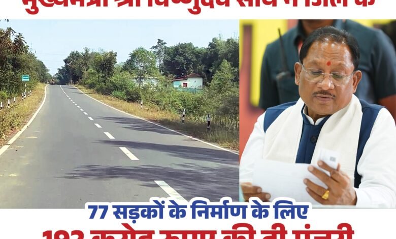 BIG breaking:– नए साल में जशपुर को ऐतिहासिक सौगात, मुख्यमंत्री श्री विष्णुदेव साय ने 77 सड़कों के लिए ₹192 करोड़ रुपए से अधिक की दी मंजूरी