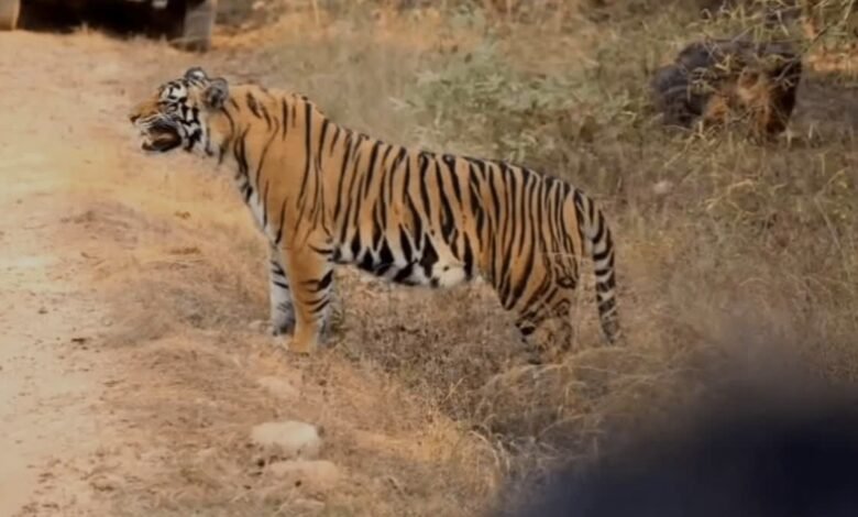 जमीन सूंघी, जीभ निकाली फिर आंखें दबाईं, बाघ का अजब-गजब रिएक्शन, पर्यटक हुए हैरान