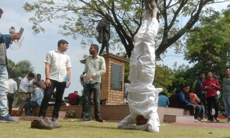 भोपाल: मध्य प्रदेश विधानसभा के 10वें दिन कांग्रेस विधायक ने विरोध का ऐसा तरीका आजमाया, जिसने सभी का ध्यान अपनी तरफ खींच लिया. श्योपुर से कांग्रेस विधायक बाबूलाल जंडेल ने अपने खिलाफ दर्ज हुई एफआईआर के खिलाफ विधानसभा परिसर में अनोखे तरीके से विरोध दर्ज कराया. कांग्रेस विधायक ने विधानसभा परिसर में शीर्षासन किया. उन्होंने शीर्षासन करते हुए ही मीडिया के सामने अपनी बात को रखा. वहीं विधानसभा की कार्यवाही अनिश्चितकालीन के लिए स्थगित हो गई है.