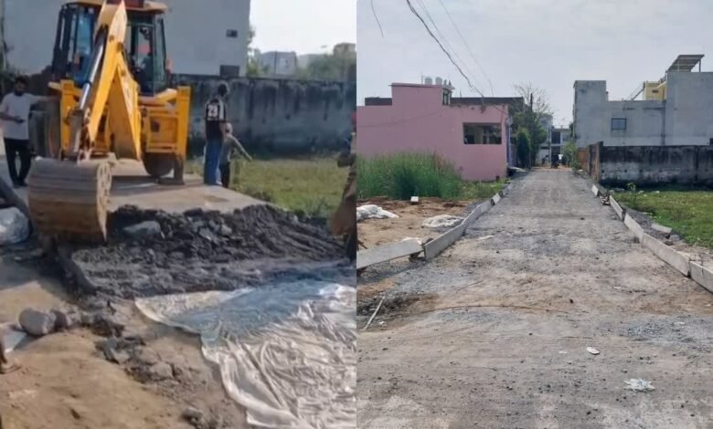 PWD मंत्री के इलाके में बड़ा एक्शन: गुणवत्ता में लापरवाही पर 2 दिन पुरानी सड़क पर अधिकारियों ने चलवाया बुलडोजर