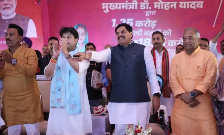 ग्वालियर: ख्यमंत्री डॉ. मोहन यादव ने घाटीगांव में आयोजित कार्यक्रम में सिंगल क्लिक के जरिए सवा करोड़ से अधिक लाड़ली बहनों के खातों में करीब 1836 करोड़ रुपये की राशि ट्रांसफर की. इस दौरान मुख्यमंत्री ने ग्वालियर में 121.95 करोड़ लागत के 54 विकास कार्यों का भूमिपूजन व लोकार्पण भी किया. इतना ही नहीं कार्यक्रम में मौजूद रहे केंद्रीय मंत्री ज्योतिरादित्य सिंधिया ने जब ग्वालियर के लिए पांच मांगें सीएम के सामने रखीं तो मुख्यमंत्री ने उन्हें तुरंत पूरा करने की घोषणा भी कर दी है.
