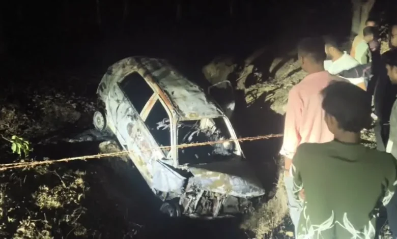 बालाघाट: शनिवार देर रात बालाघाट में भीषण हादसा हो गया. चलती कार दुर्घटनाग्रस्त होने के कारण आग का गोला बन गई और उसमें सवार तीन लोगों की जिंदा जलकर मौत हो गई. जबकि दो लोग गंभीर रूप से घायल हो गए. वहीं एक 8 साल की बच्ची सलामत बच गई. आग इनती भीषण थी कि तीन लोगों को कार से बाहर नहीं निकाला जा सका और वे कार के अंदर ही जिंदा जल गए.