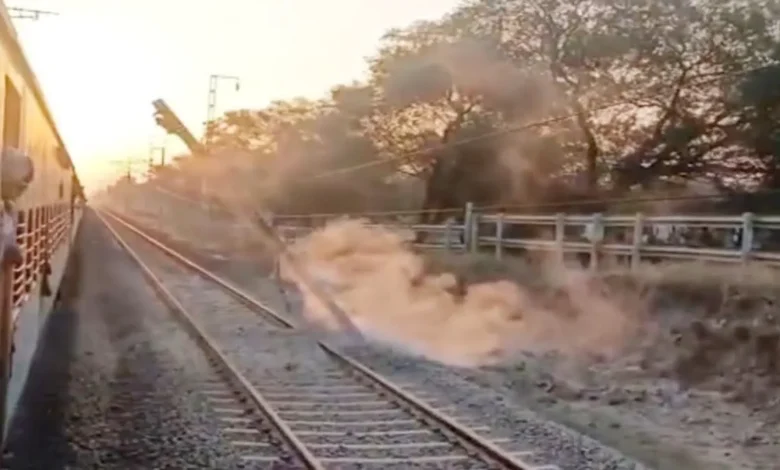 Ratlam Railway Alert: दिल्ली-मुंबई रेलमार्ग पर OHE लाइन का पोल झुका, जोरदार ब्लास्ट के बाद थमी ट्रेनों की रफ्तार।