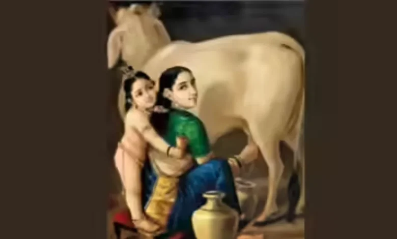 1890 के दशक में, जब वर्मा अपनी कला के शिखर पर थे, तब उनके द्वारा बनाई गई इस पेंटिंग में माता यशोदा और भगवान कृष्ण की बाल कृष्ण और उनकी मां यशोदा के पौराणिक पात्रों के जरिए मातृत्व प्रेम का एक कोमल और गहरी कला को उकेरा गया है.