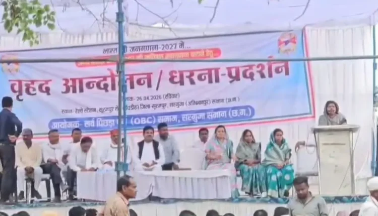 सूरजपुर: जातिगत जनगणना की मांग को लेकर ओबीसी महासभा ने मोर्चा खोल दिया है. महासभा के सैंकड़ों कार्यकर्ता ऊंचडीह रेलवे स्टेशन पहुंचे और धरना प्रदर्शन किया. इस दौरान प्रदर्शनकारियों ने रेलवे स्टेशन का सांकेतिक घेराव करते हुए राष्ट्रपति के नाम ज्ञापन सौंपा.